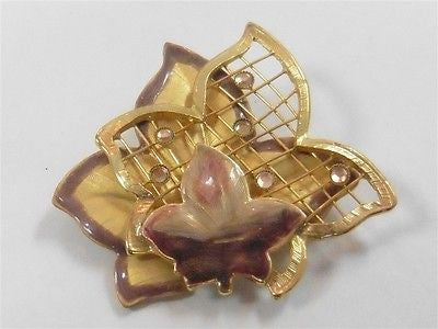 Gold Tone Signed KC Leaf Enamel Pin / Brooch