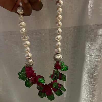 Red Dragon Veins Agate Pearl Necklace