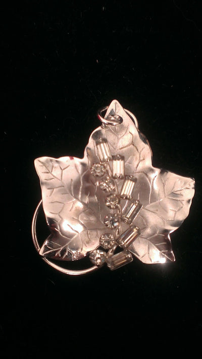 Sterling silver and rhinestone leaf rhinestone brooch pendant