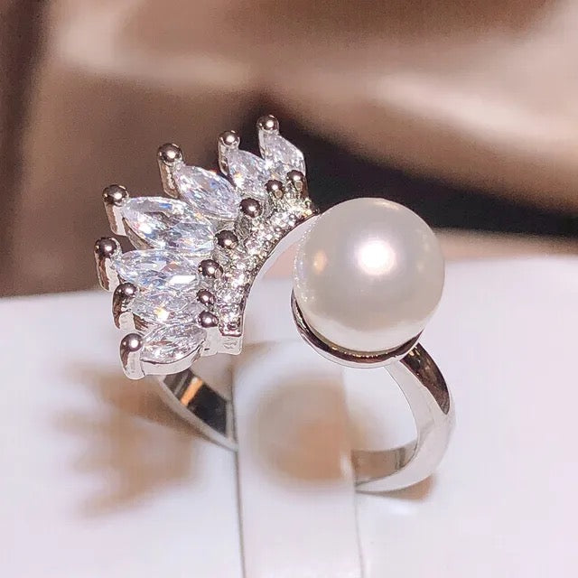 S925 Sterling Silver Shining Crown and Ring Adjustable Size