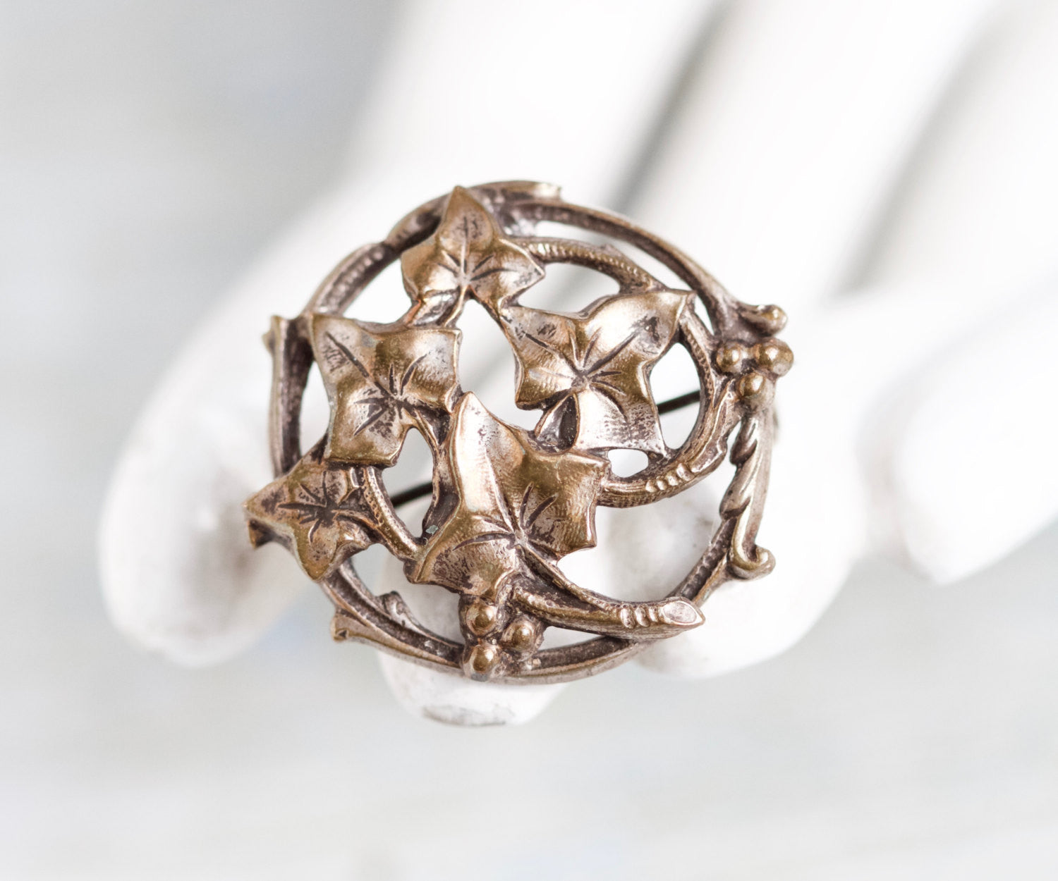 Art Nouveau Lapel Pin - IVY Sterling Silver Brooch