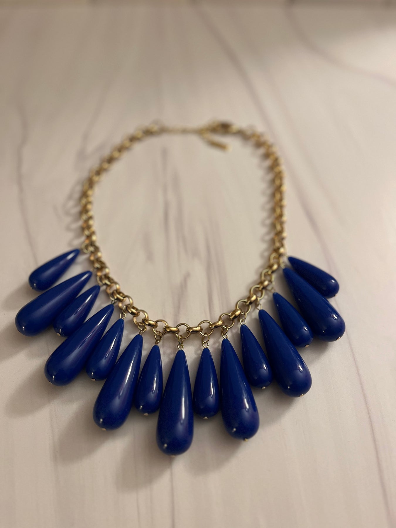 Enhance your style with Blue Elegance - a stunning blue necklace with elegant gold hardware. Add a touch of sophistication to any outfit.