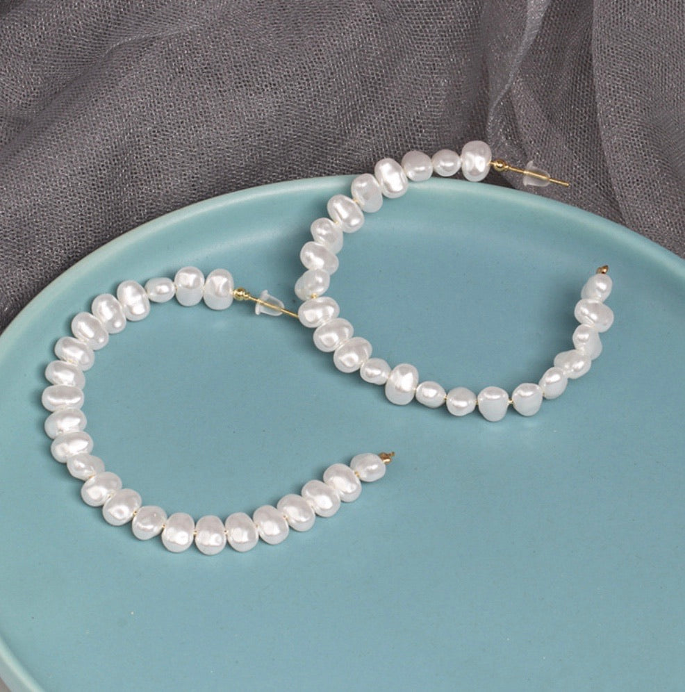 Fashion Beads Exaggerated C-shaped Beaded Stud Earrings