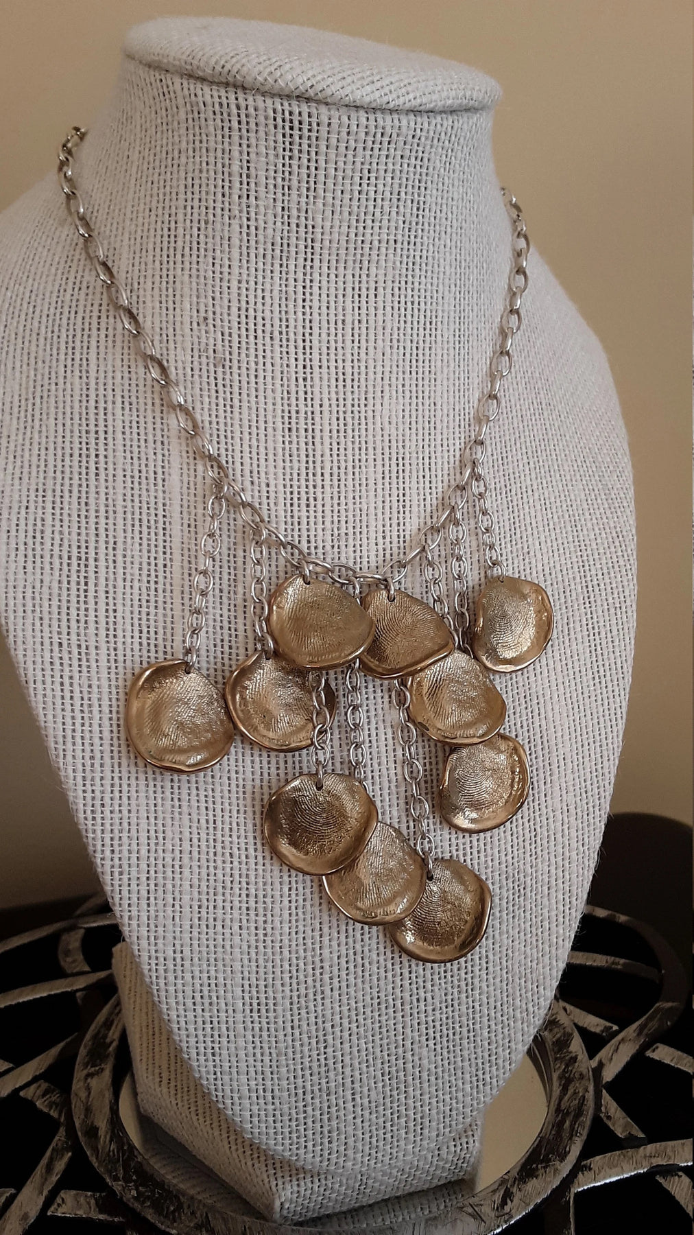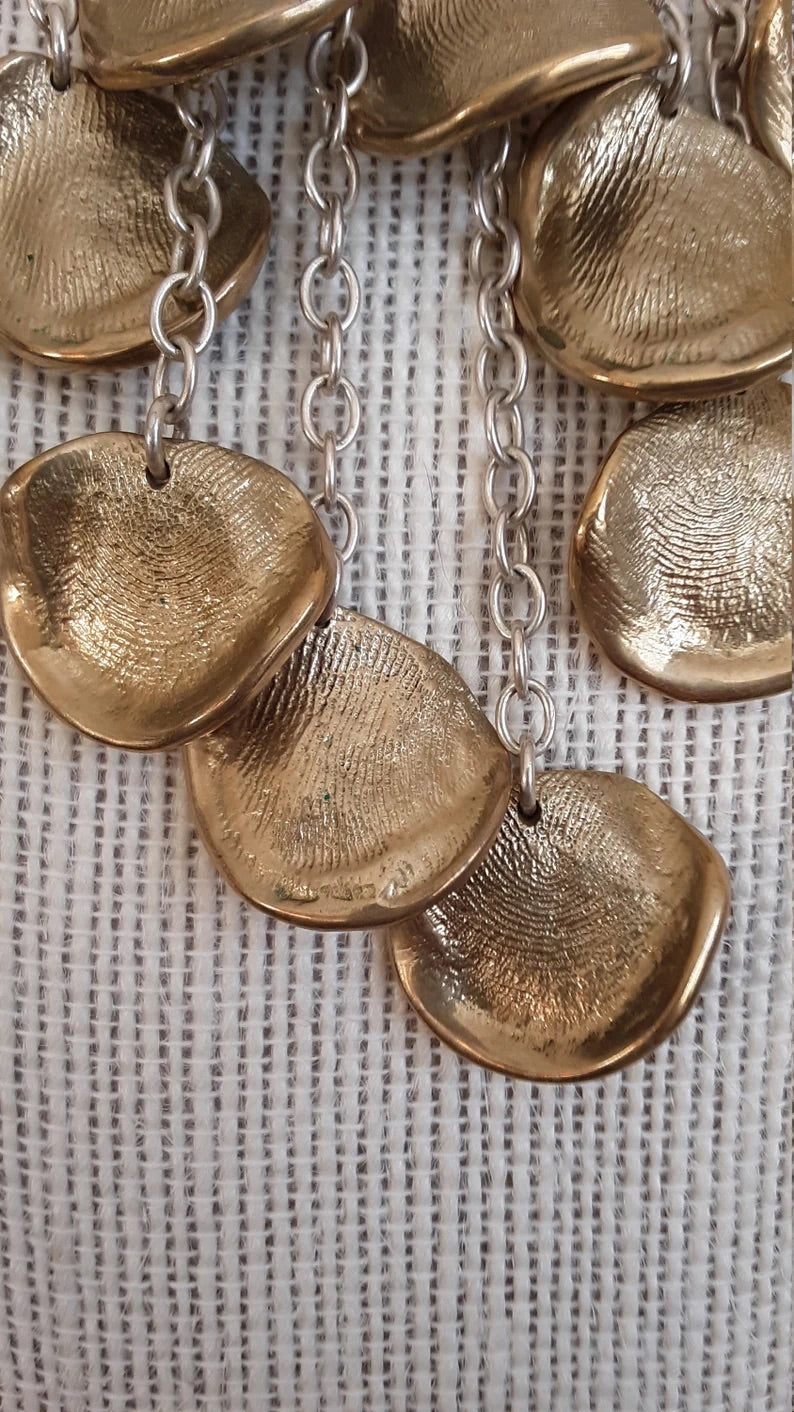 Unique Vintage Retired RLM Studio Robert Lee Morris Sterling Silver 925 Brass Petal Print Necklace Estate Jewelry
