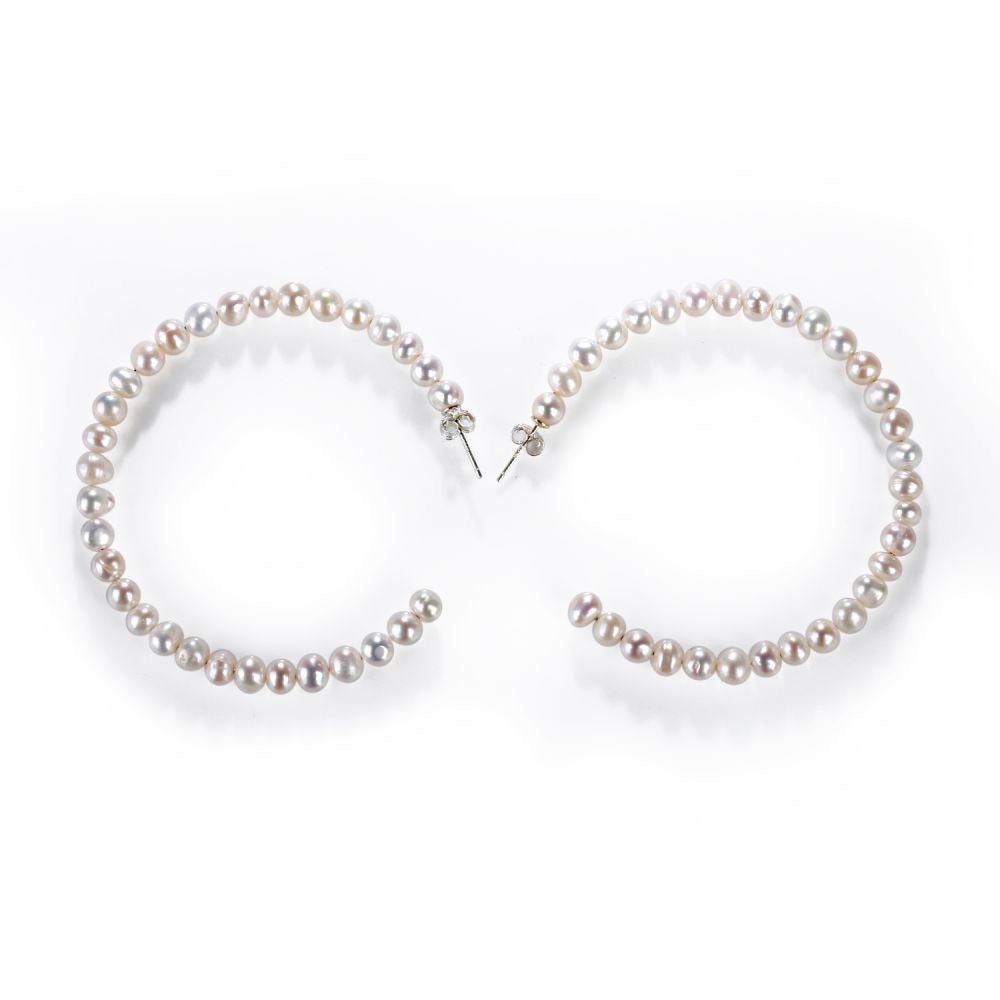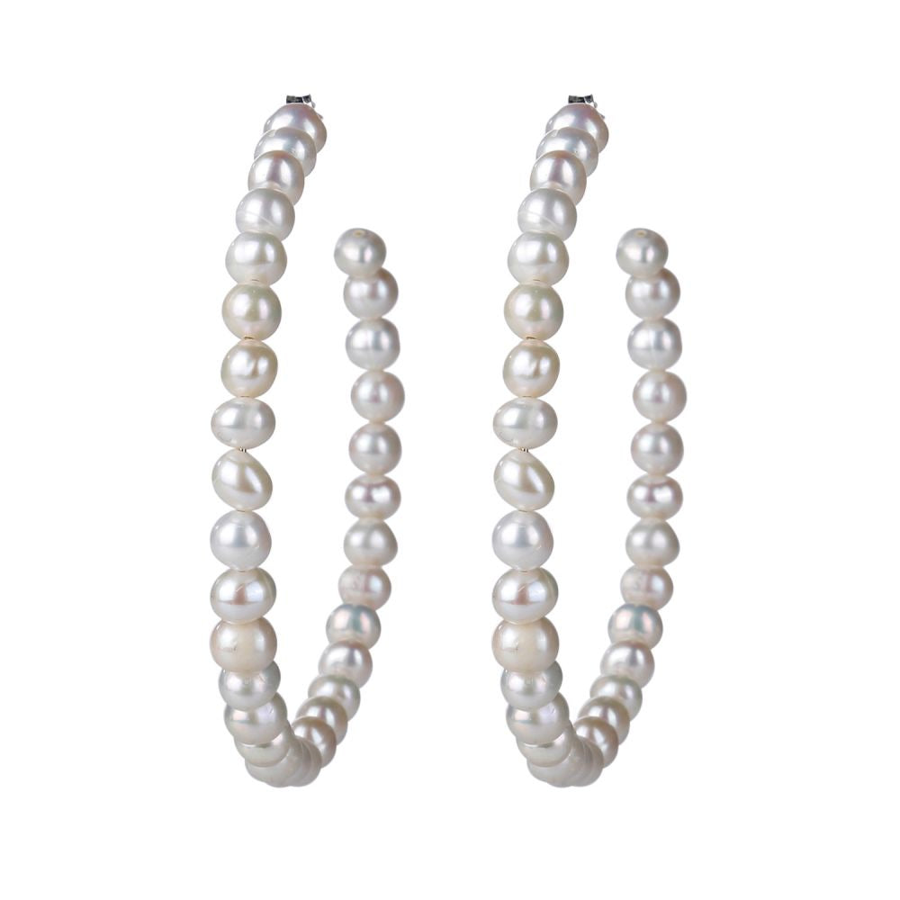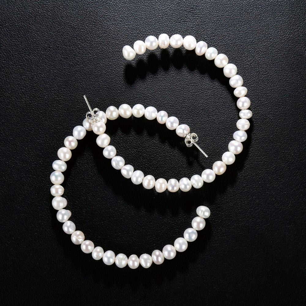 Culture Freshwater Pearl Hoop Earrings 925 Sterling Silver