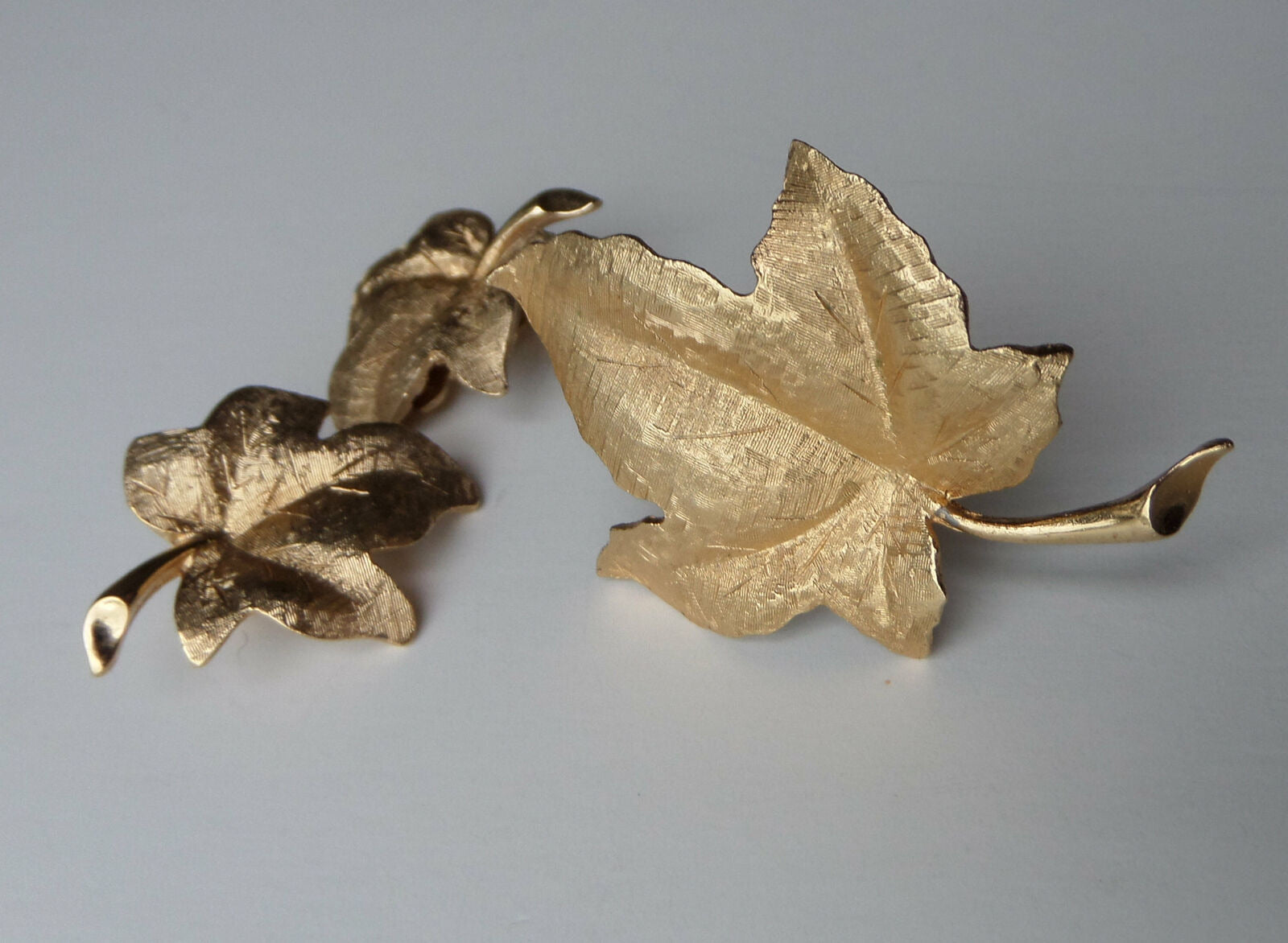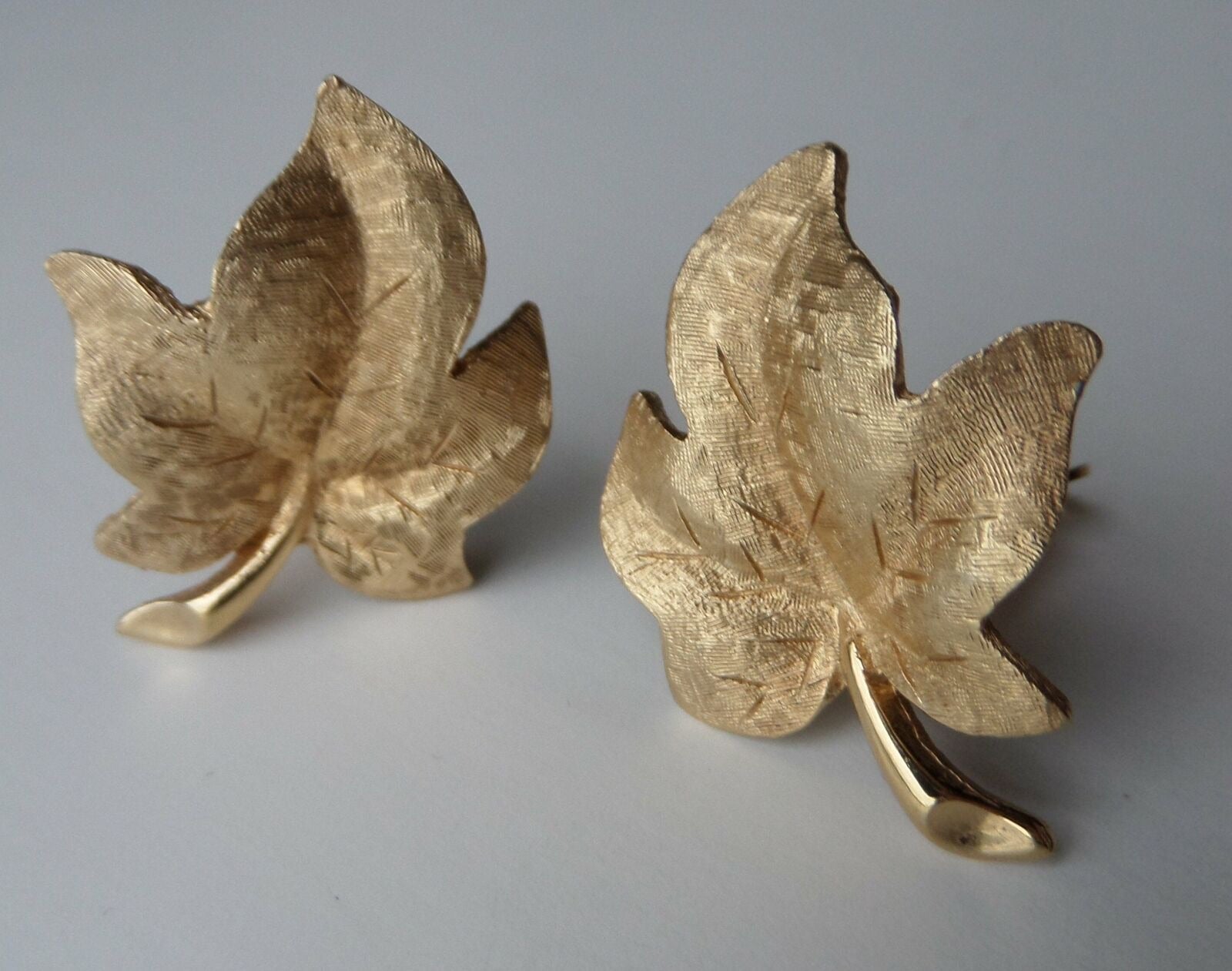 Vintage Brushed Gold Ivy Leaf Brooch & Clip Earring Set perfect for any occasion