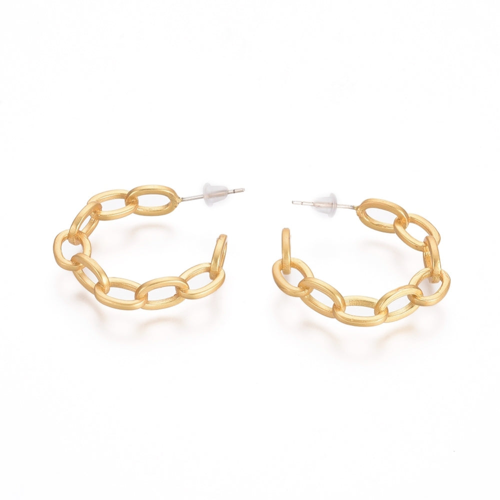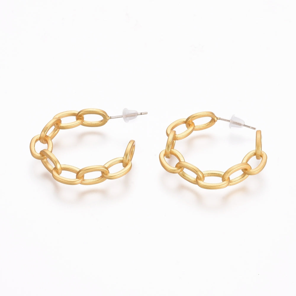 Semicircular Brass Cable Chain Stud Earrings, Half Hoop Earrings, with 925 Sterling Silver Pin and Plastic Ear Nuts, Long-Lasting Plated, Matte Gold Color