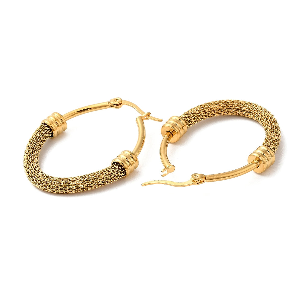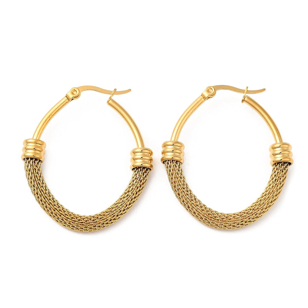 304 Stainless Steel Oval with Mesh Chains Hoop Earrings, Real 18K Gold Plated