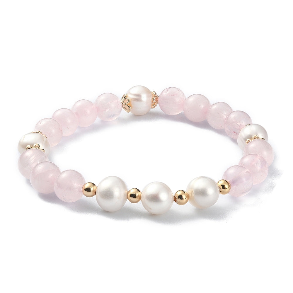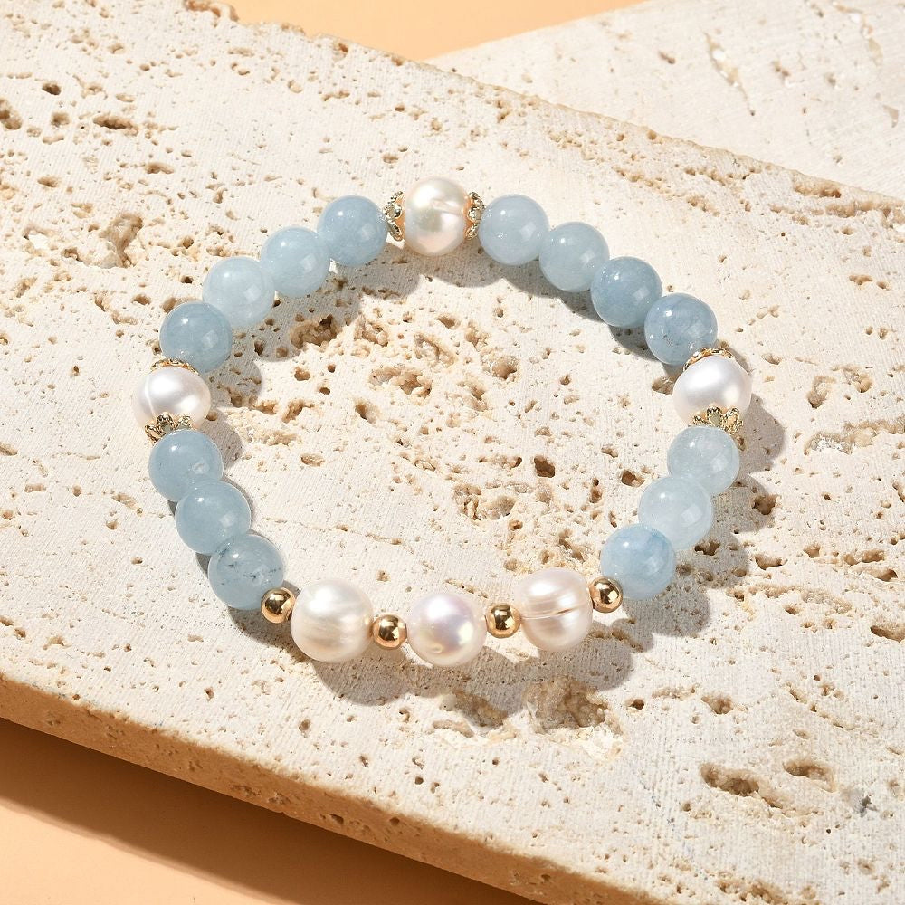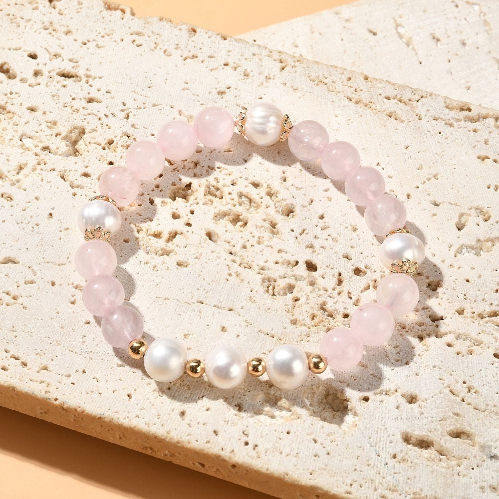 Natural Blue and Rose Quartz & Pearl Beaded Stretch Bracelet