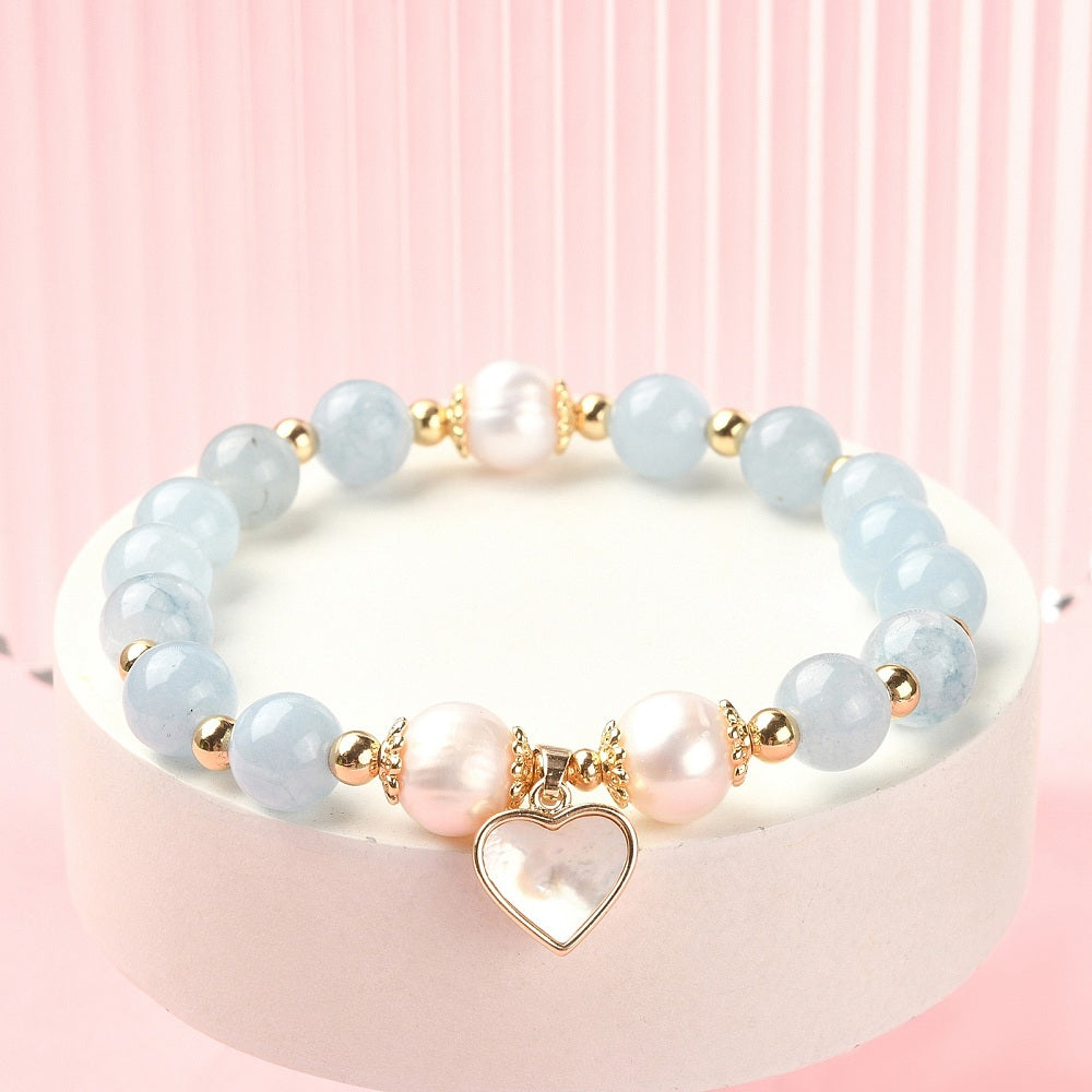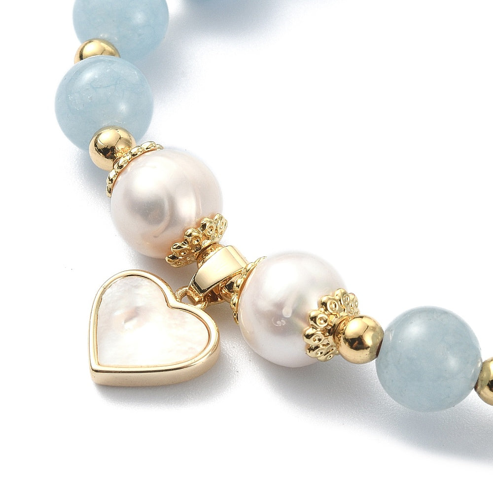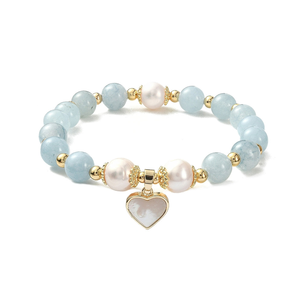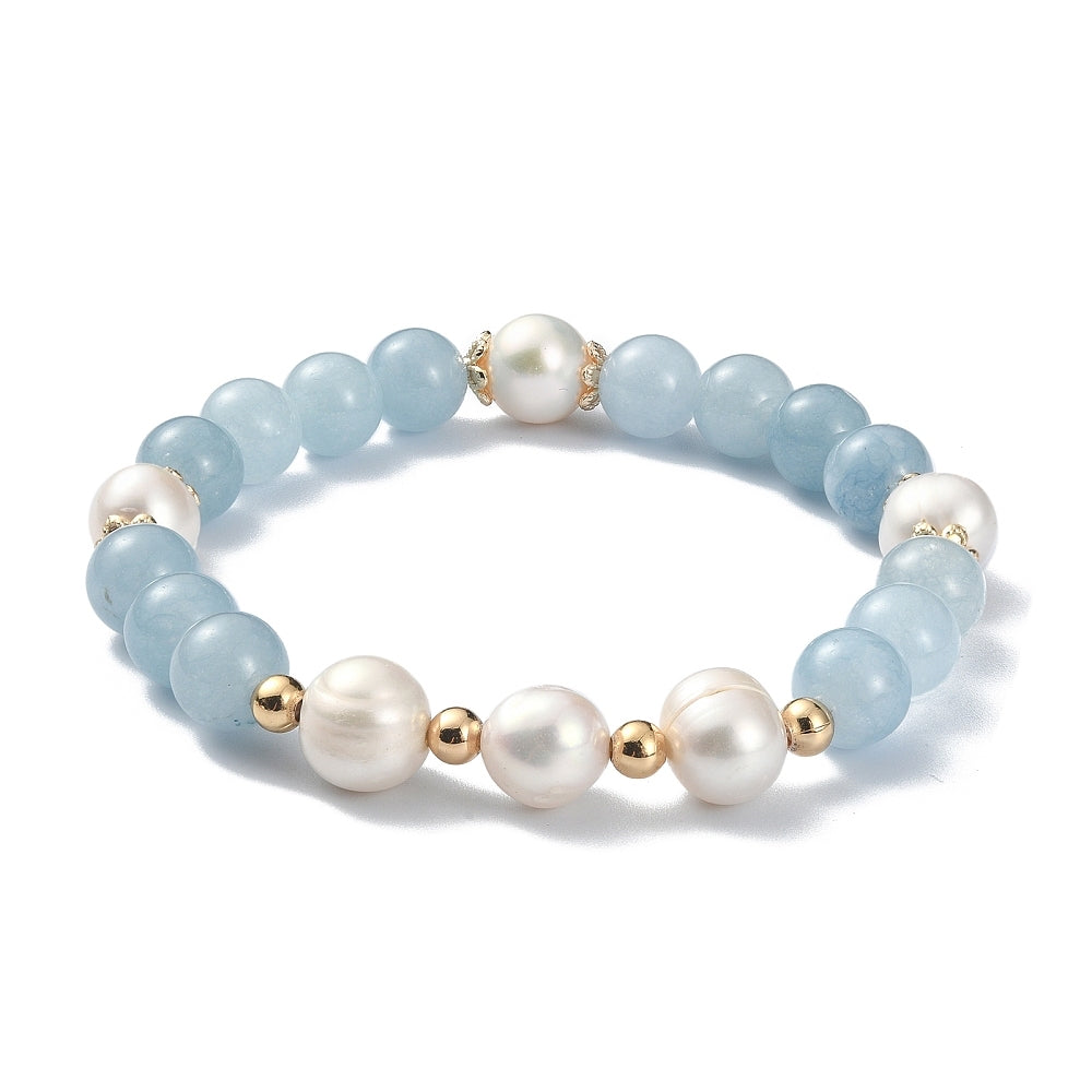 Natural Blue and Rose Quartz & Pearl Beaded Stretch Bracelet