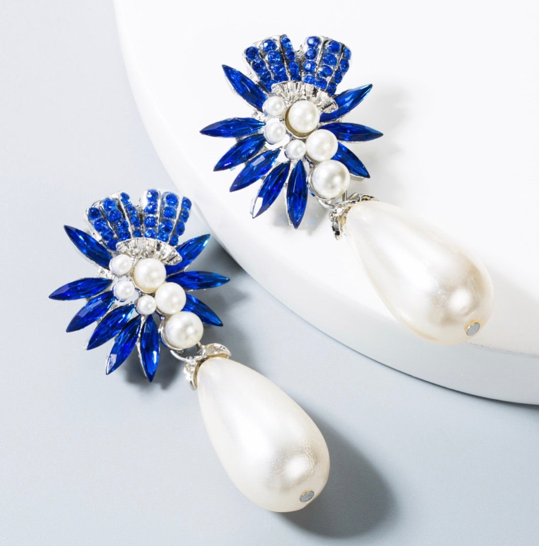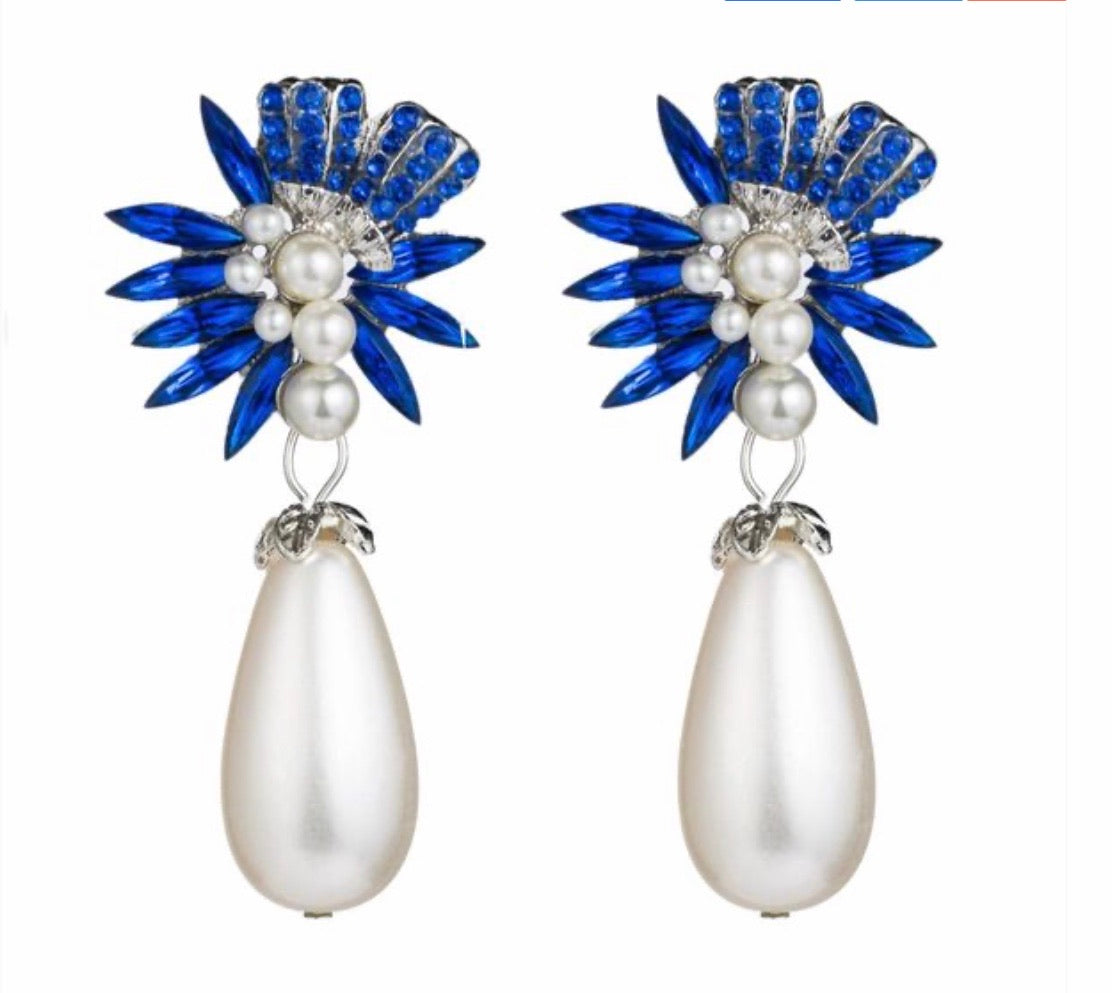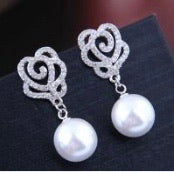 1. Fashion Jewelry Earrings Women's Alloy Rhinestone Long Large Pearl Stud Earrings