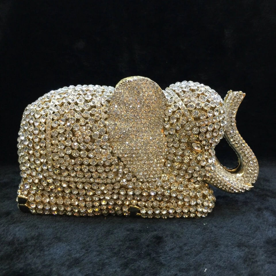 Full Crystals Gold/Silver Elephant Clutch Diamond Evening Bag
