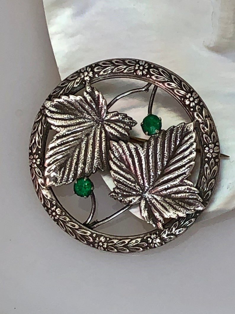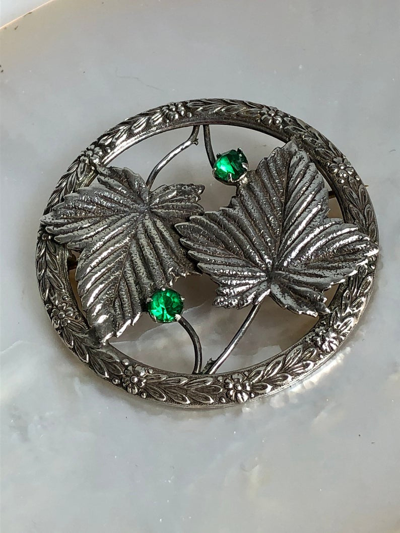 Vintage Emeralds and Ivy Brooch