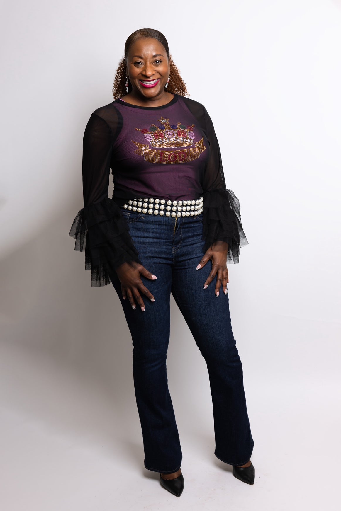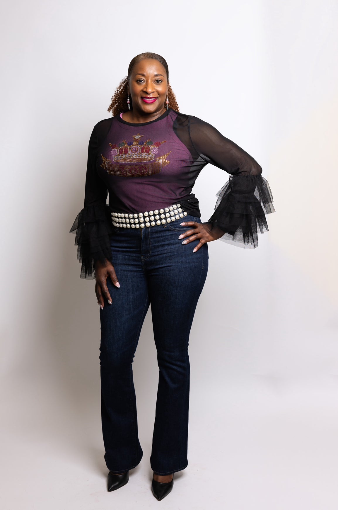 Plus Contrast Mesh Flounce Sleeve Mesh Top