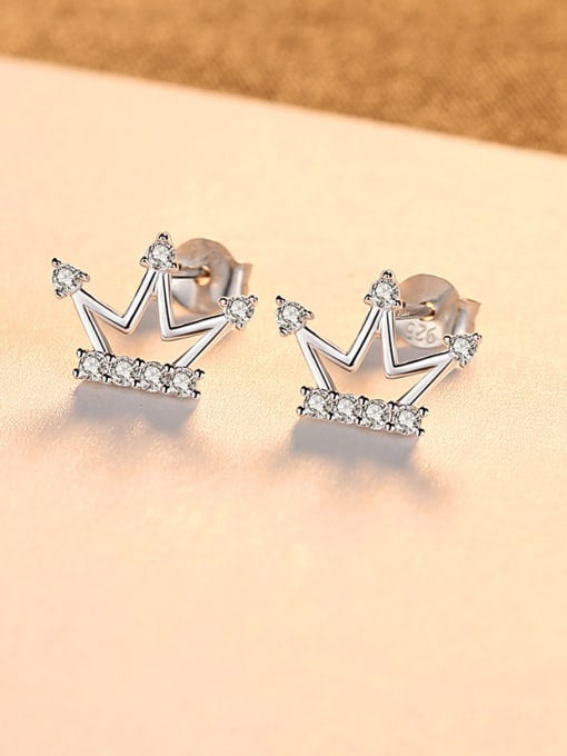 925 Sterling Silver With Cute Crown Stud Earrings