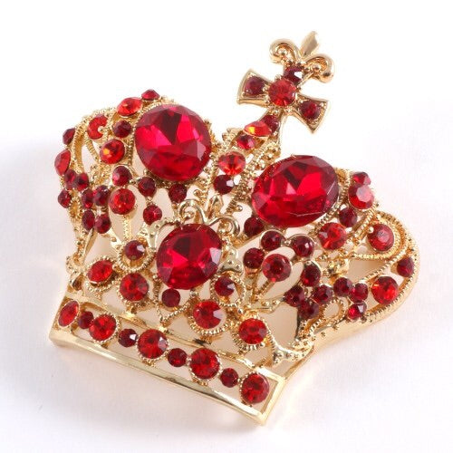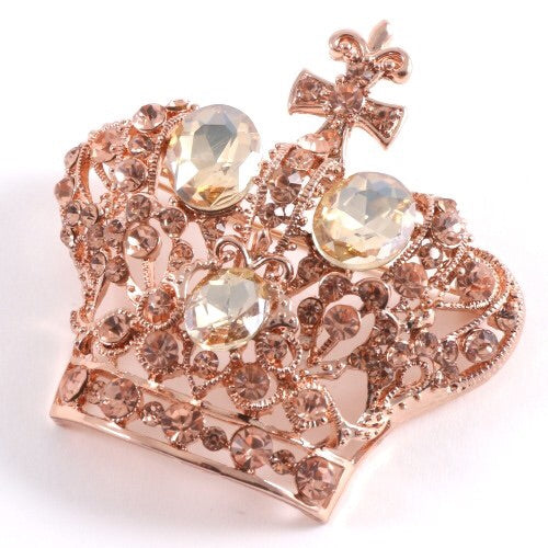 New Ross Gold Metal Royal Crown Rhinestone Pin Brooch / Approx Size : 2.25" x 2.25" / rhinestone /Metal/ lead & nickel compliant/ Color: Ross Gold