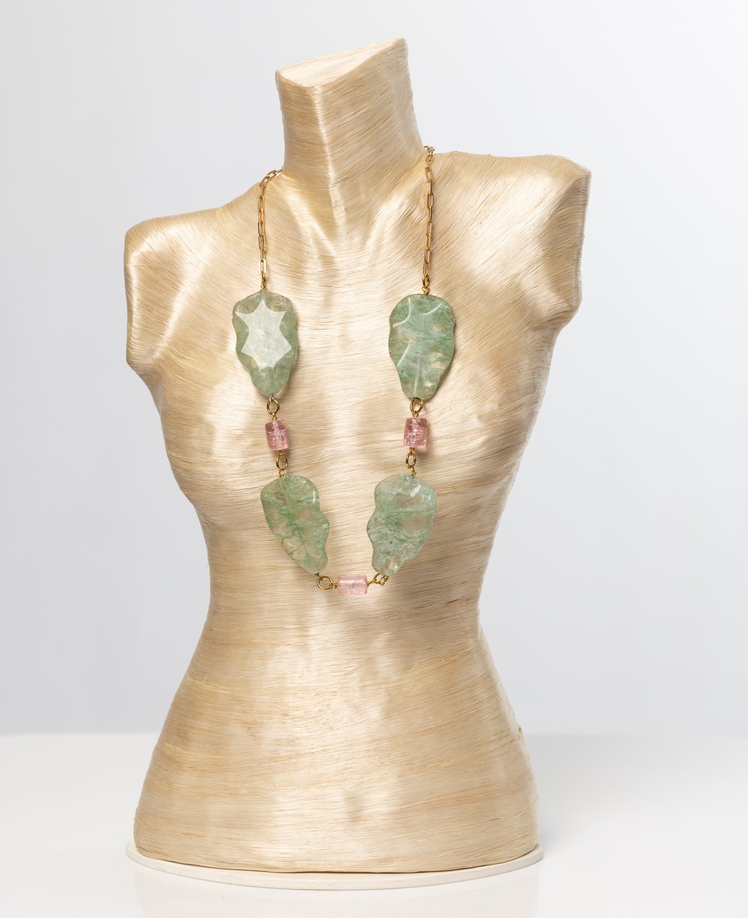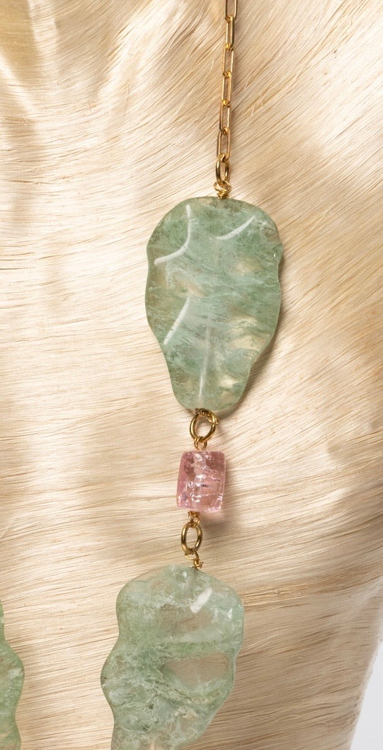 18kt Gold over Sterling Silver chain and accents and watermelon Quartz Beads