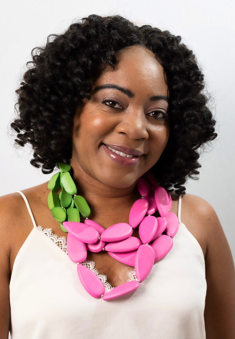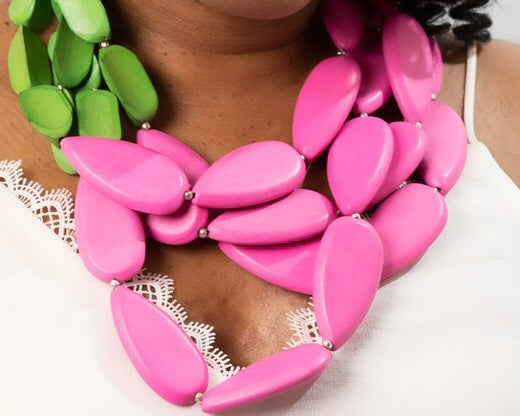 Earrings 3 pink on top green on bottom - $24.99 USD